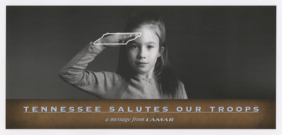 "Tennessee Salutes Our Troops", sponsored by Lamar Advertising, outdoor and full page print